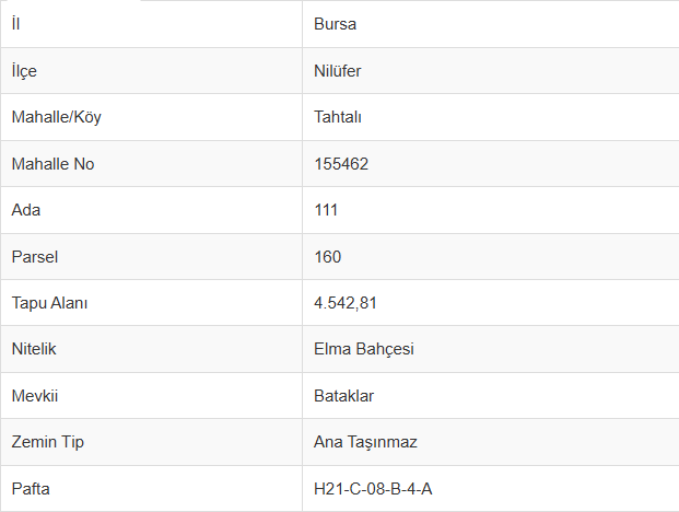 | Parsel | 160 |